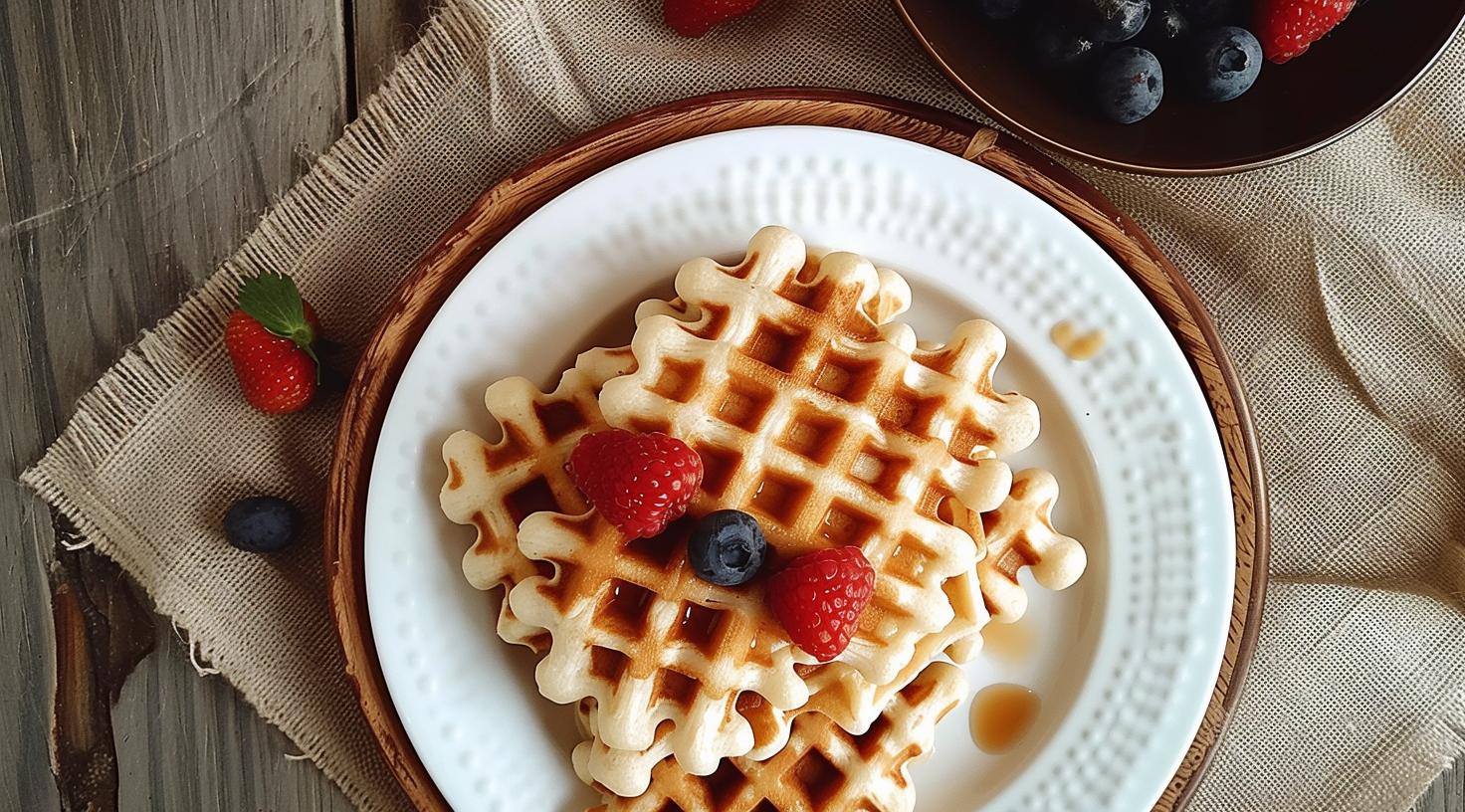 Zutaten zu einem Waffelteig vermengen und anschließend im Waffeleisen ausbacken.